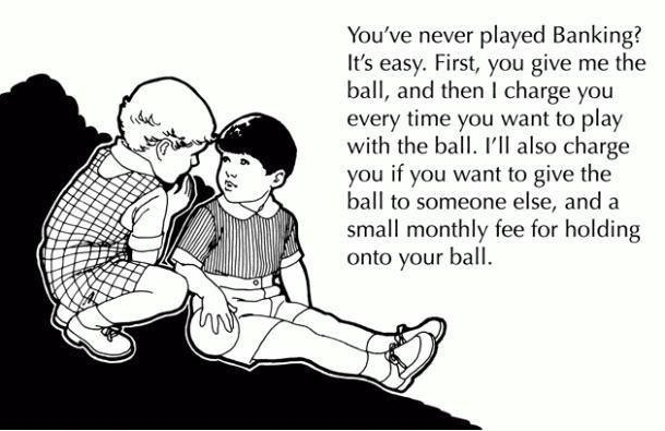 Dat lucratieve spelletje van die kapitalistische banken speel ik mooi niet mee.