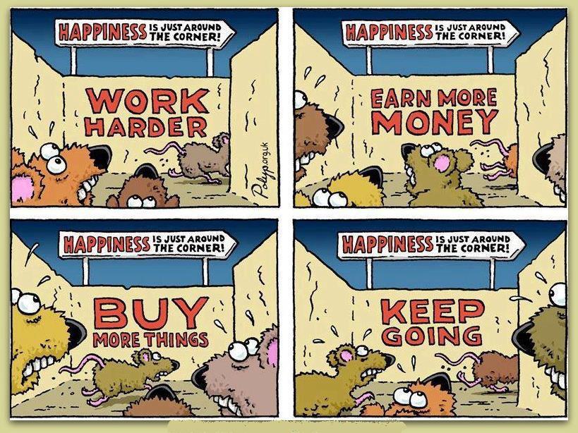 Wij willen zo weinig mogelijk geld uitgeven, want al het geld wat je niet uitgeeft, hoef je ook niet te verdienen, zo kan je minder werken en dus meer
