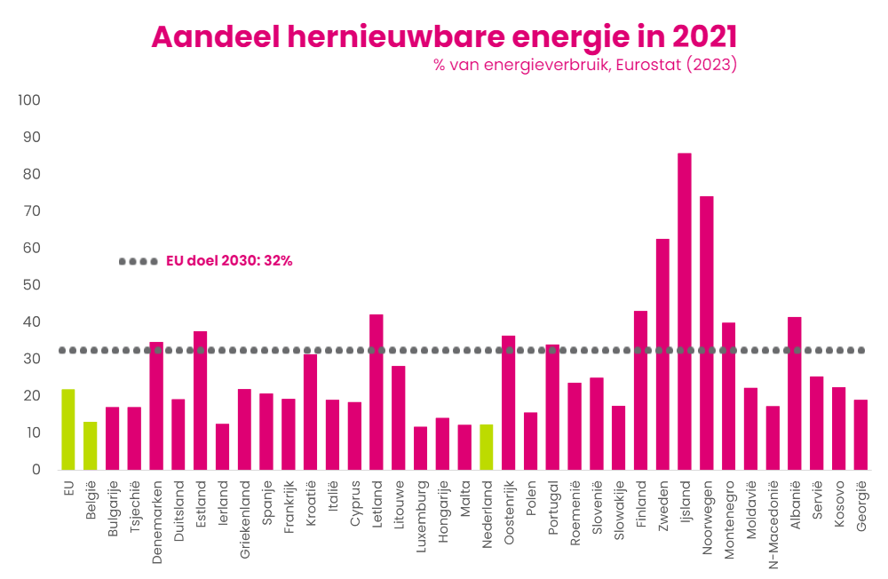 Momenteel is echter zowel in Belgie als in Nederland nog maar 13% van onze energie afkomstig van duurzame bronnen…