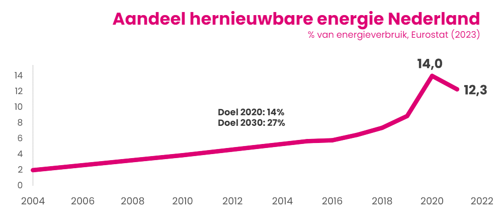 Het aandeel hernieuwbare energie zakt,